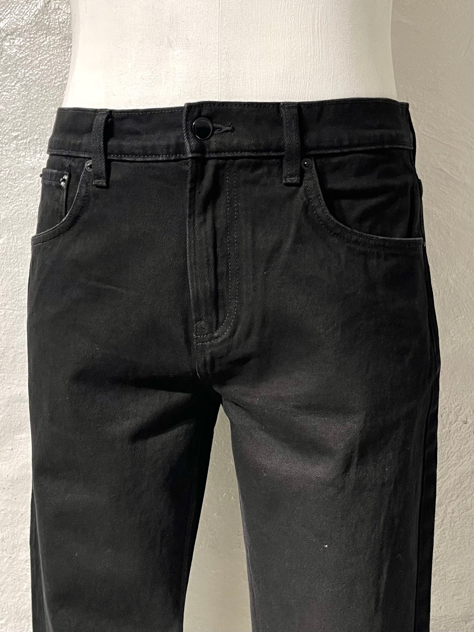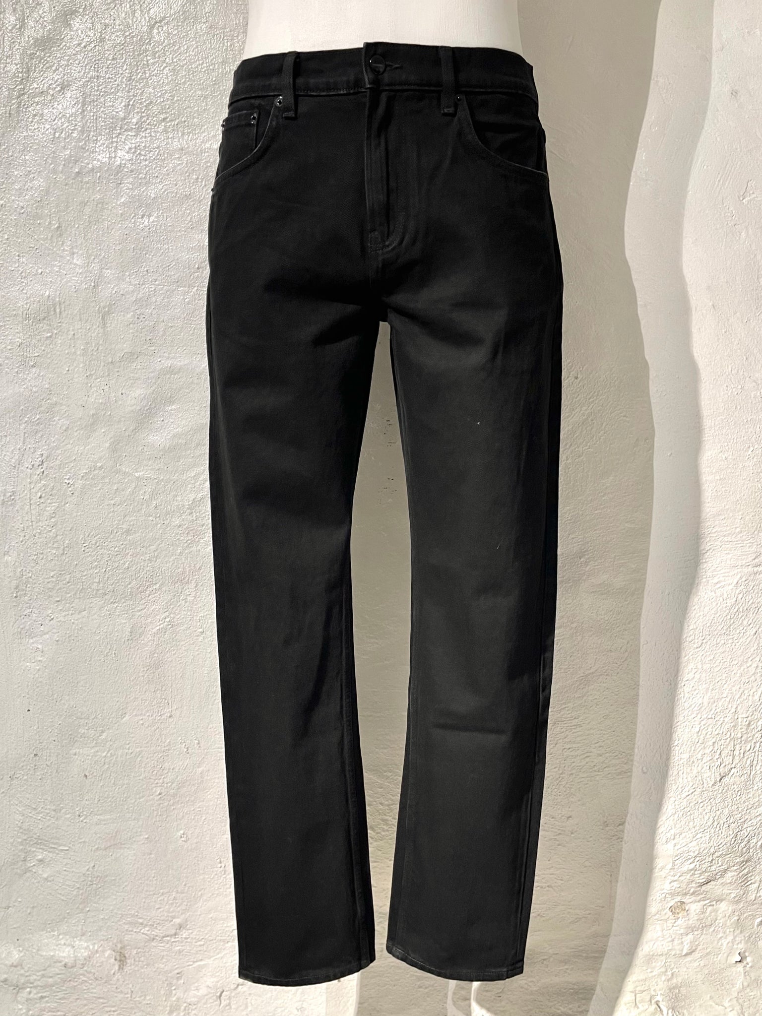 A casual fit with a tapered leg from the knee and down. Two front pockets and back patch pockets. Belt loops. Front zip and button closure.