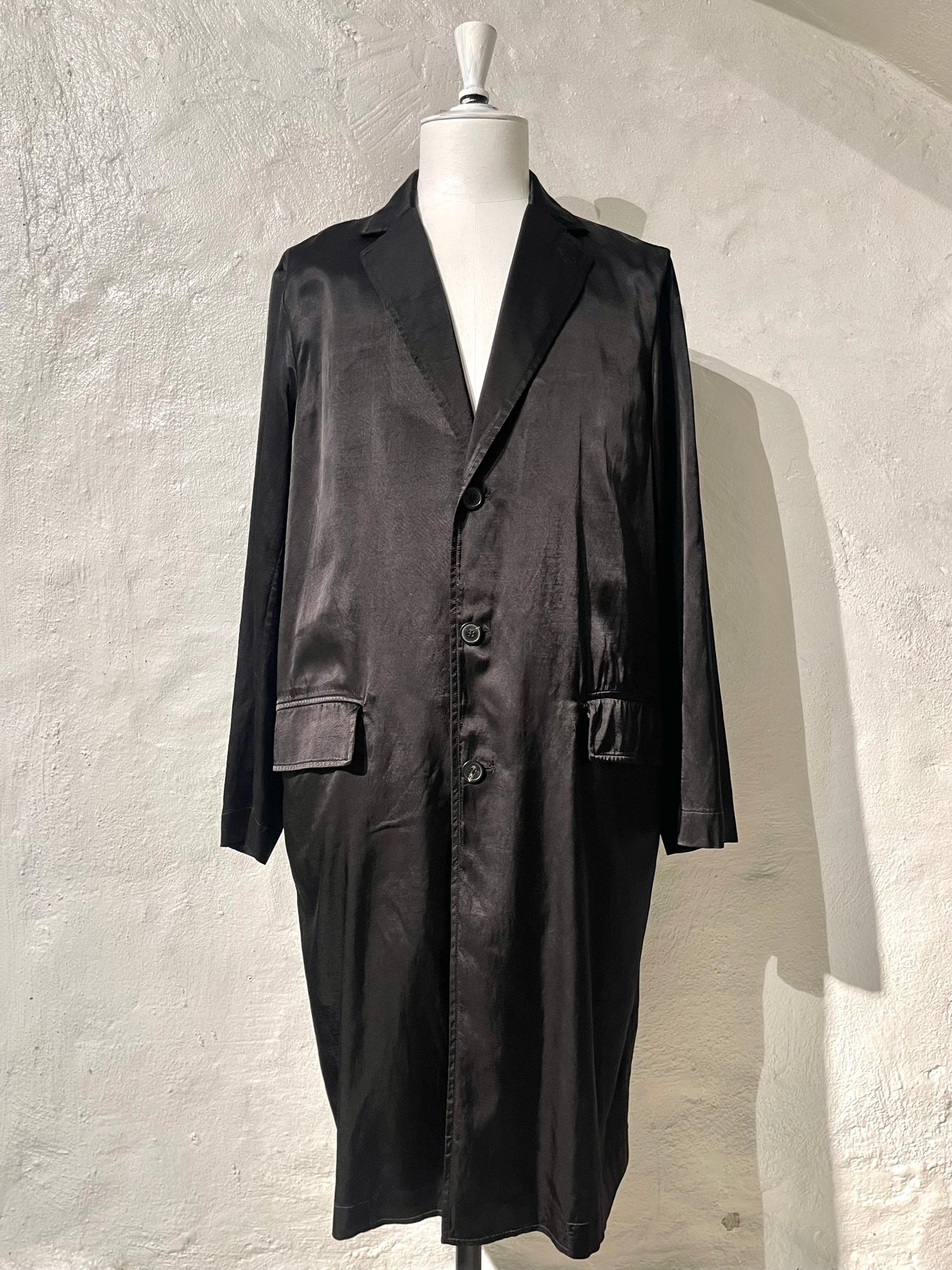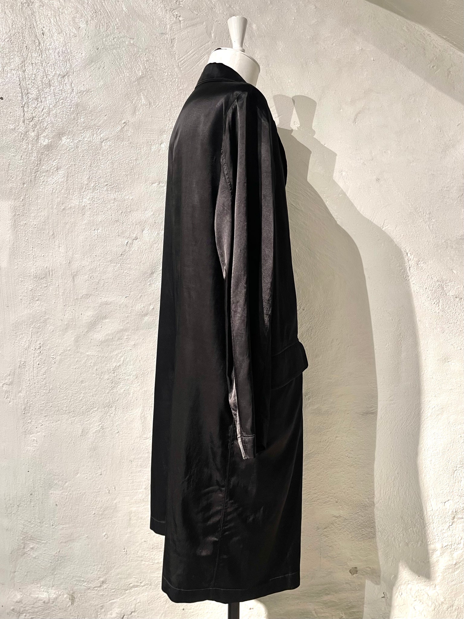 Shiny viscose blend classic fit car coat.