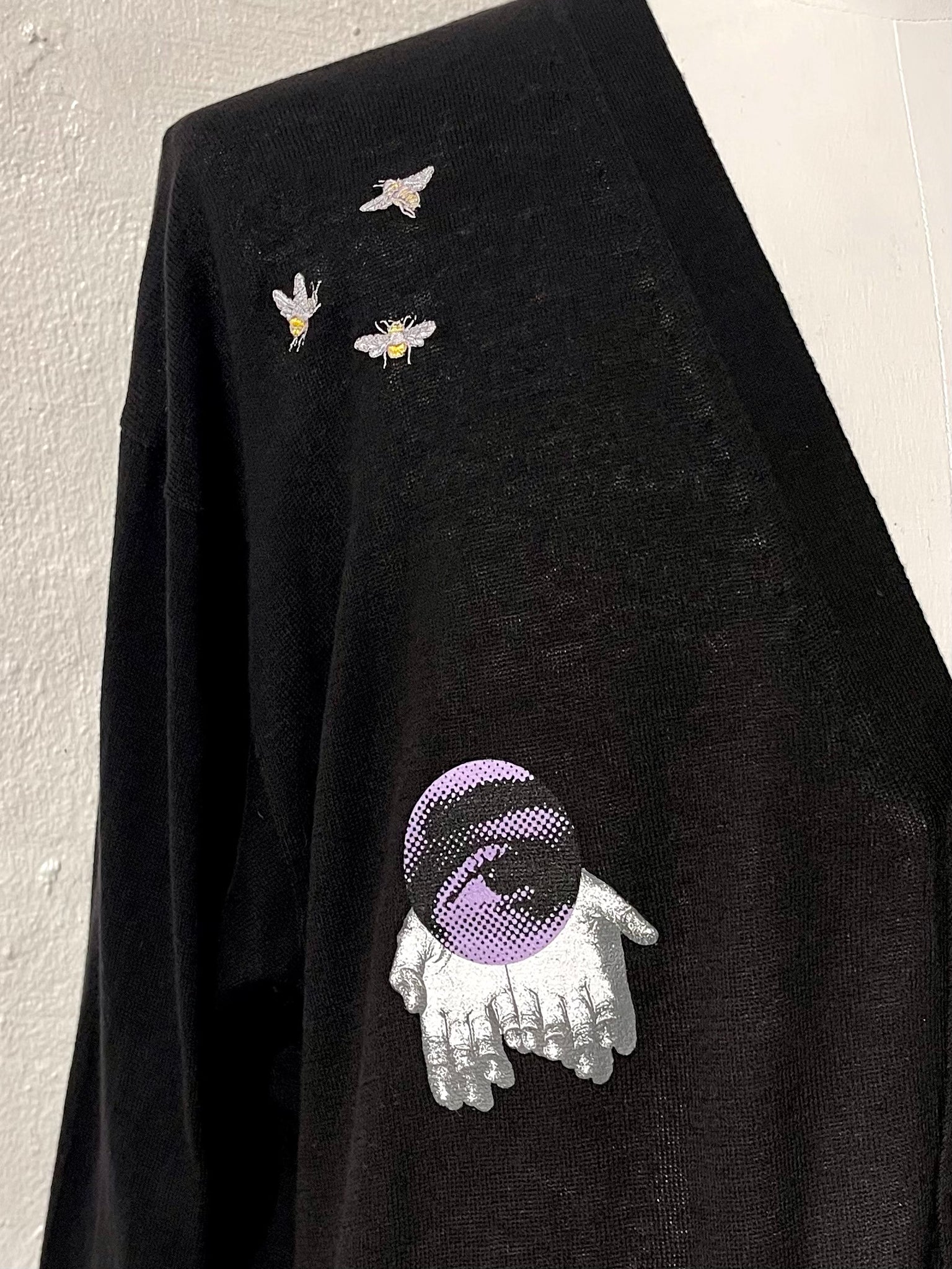 Fine knit cardigan with embroidery patches