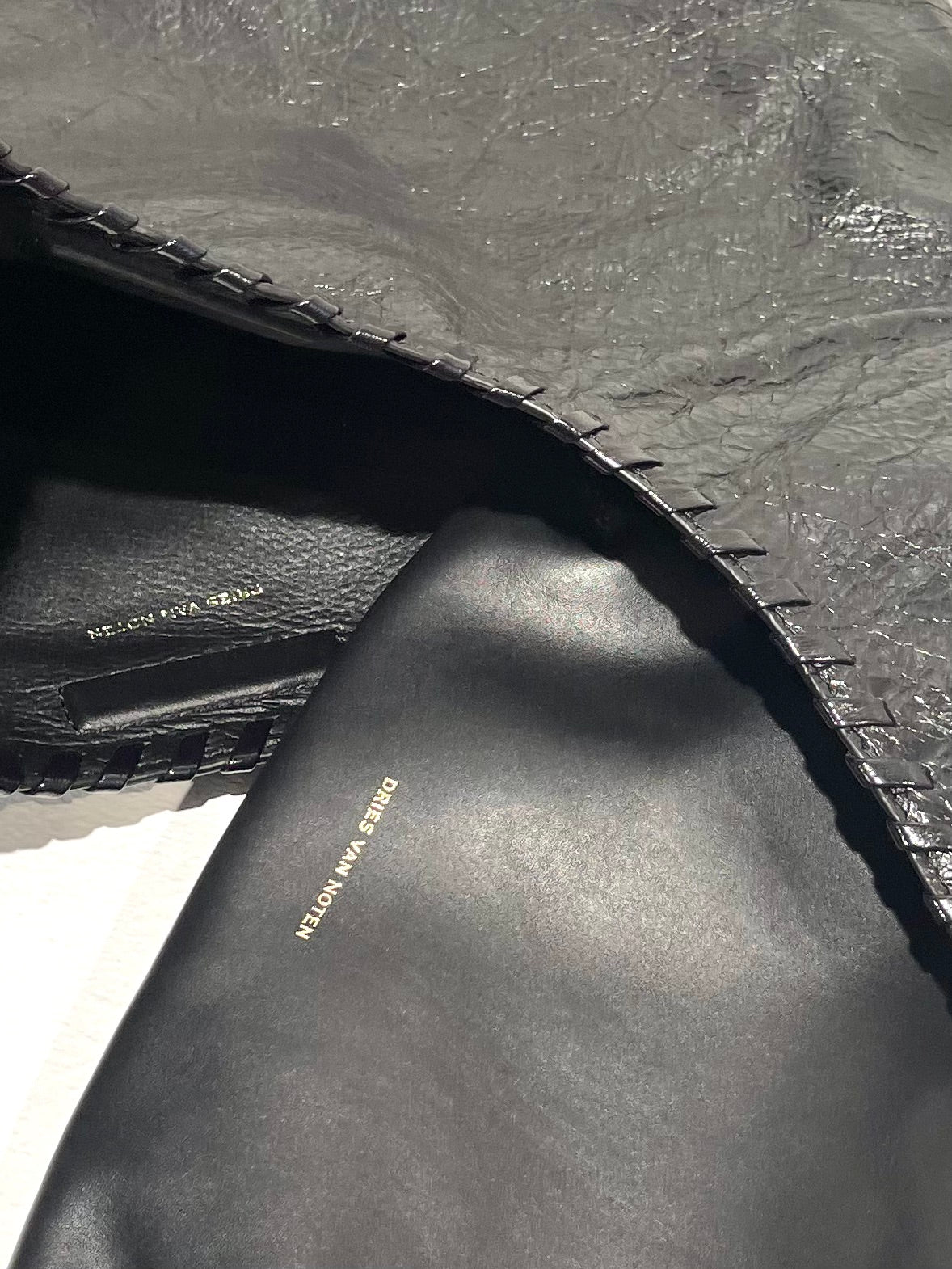 Dries Van Noten Large leather tote bag with braided embellished handles and inner pouch. Shoulder-length handles. Detachable inner pochette.