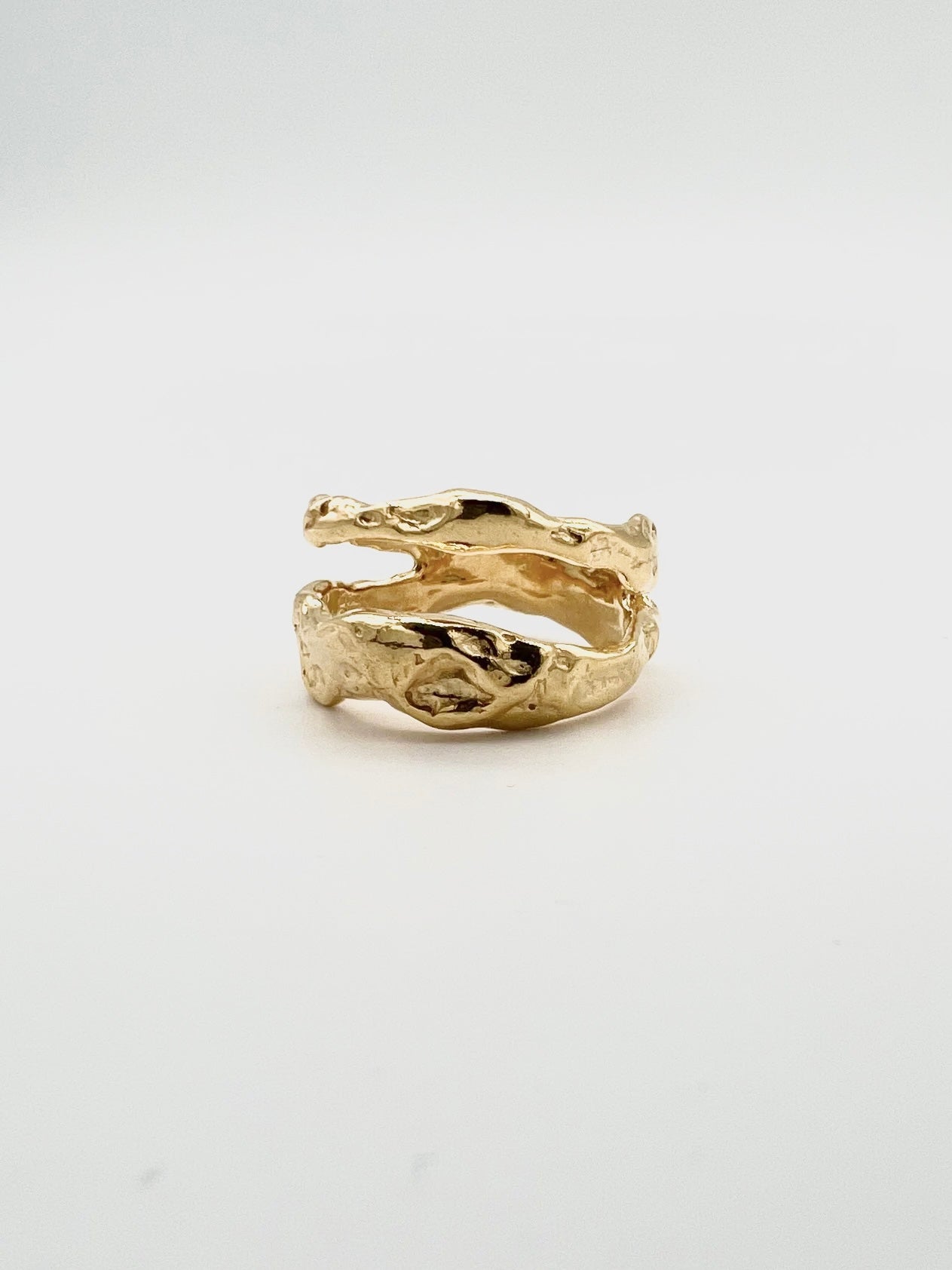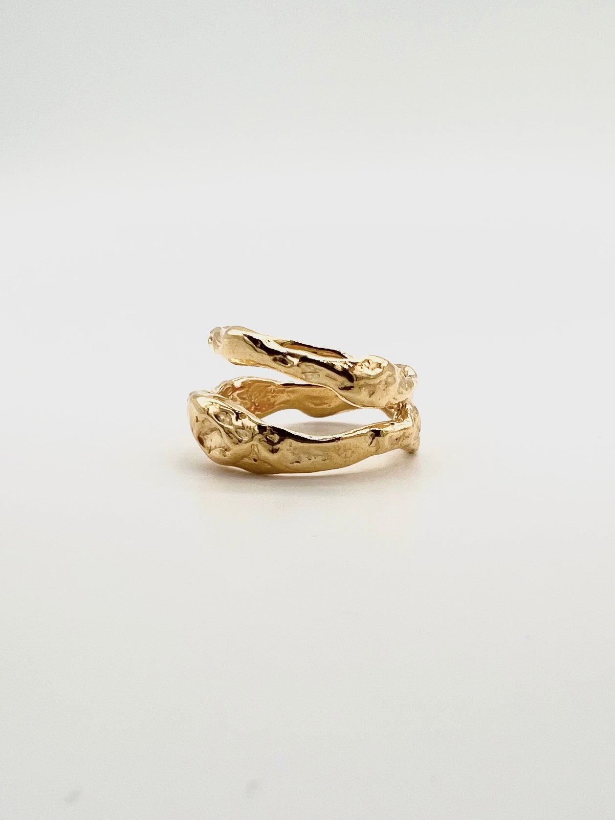 FESWA Ring 2 stacked ring in 22 carat Gold Plated 925 Sterling Silver