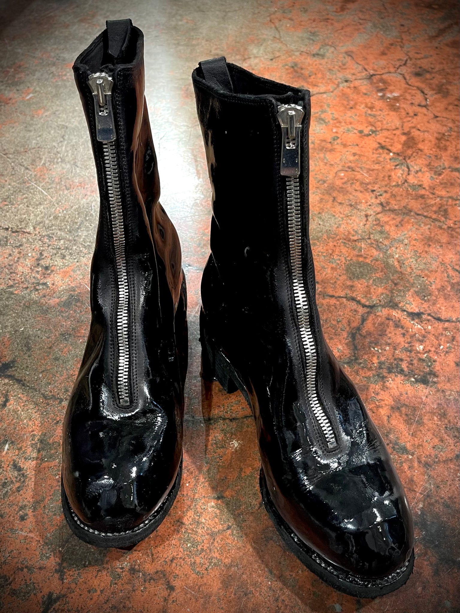 GUIDI PATENT BOOTS CLASSIC FRONT ZIP , MID HIGH,PL2XB