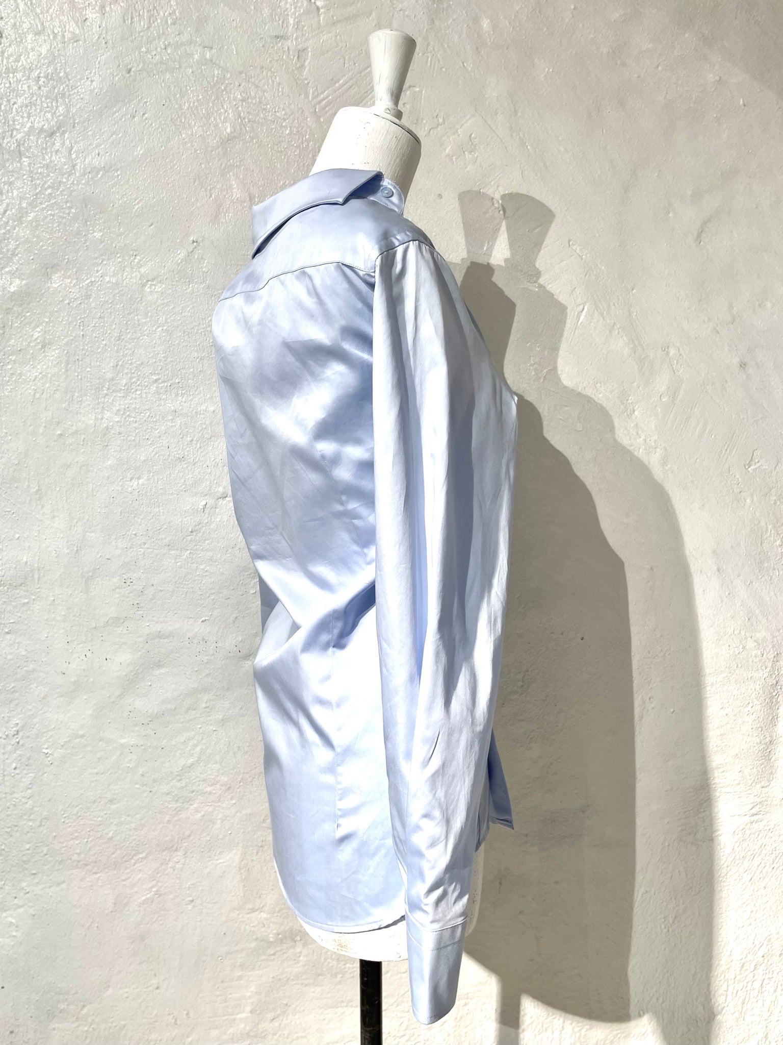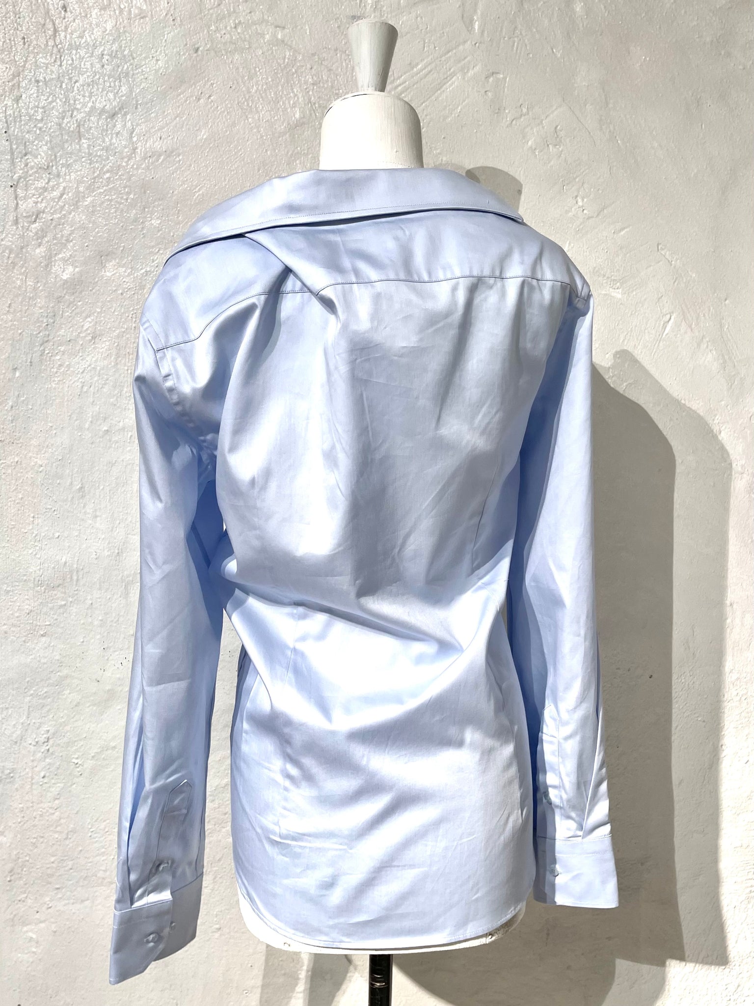 The Asymmetrical Shirt is defined by its asymmetric collar-bone cut and button closing.