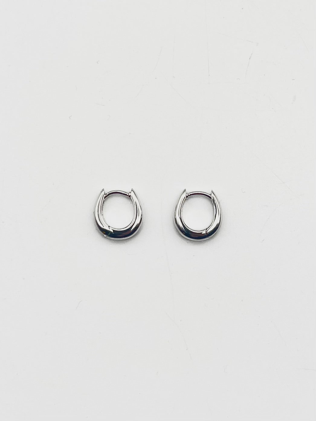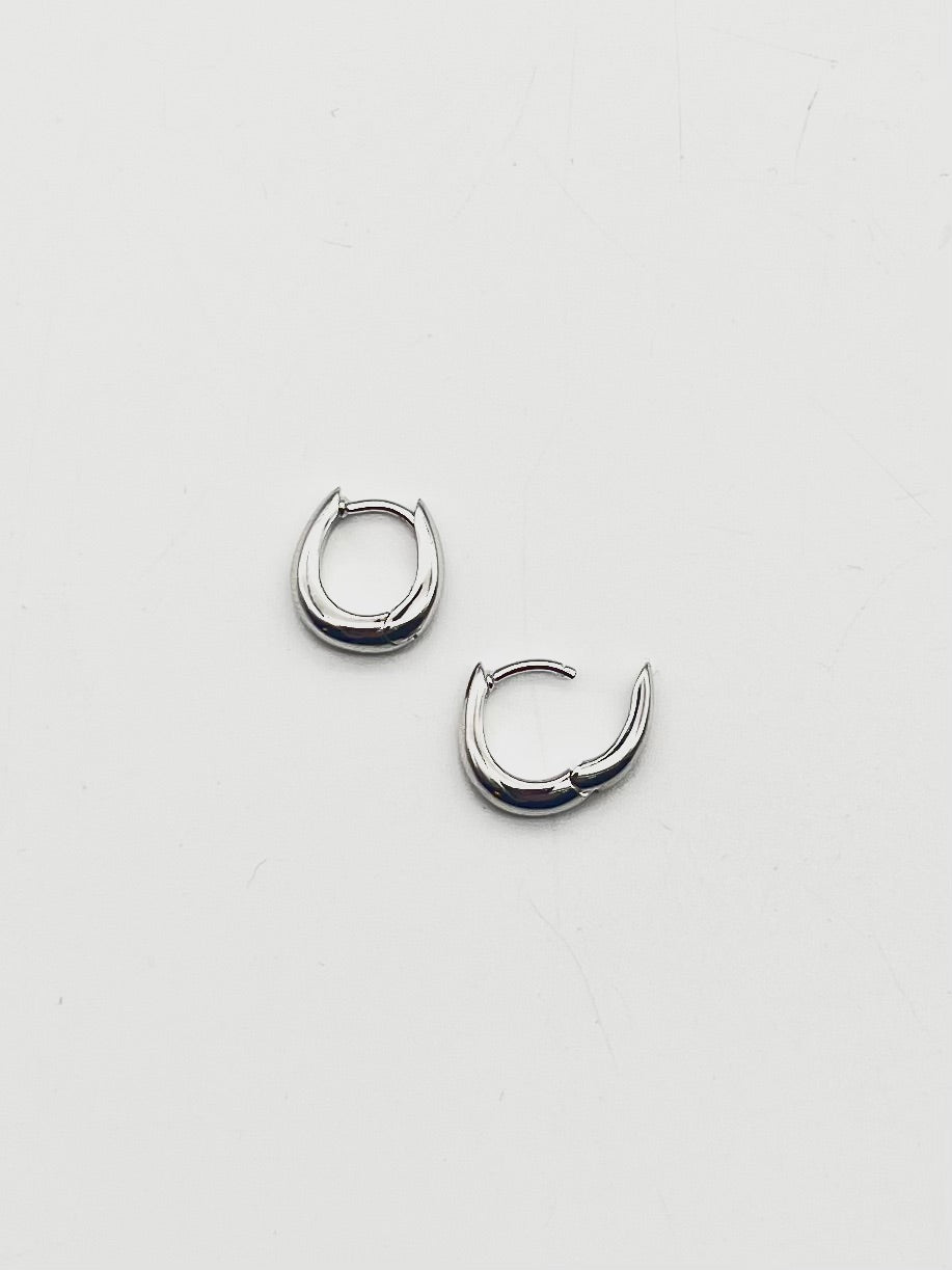 The hoops are made with solid 925 sterling silver in a polished finish, plated with white rhodium to strengthen the surface and prevent tarnishing.