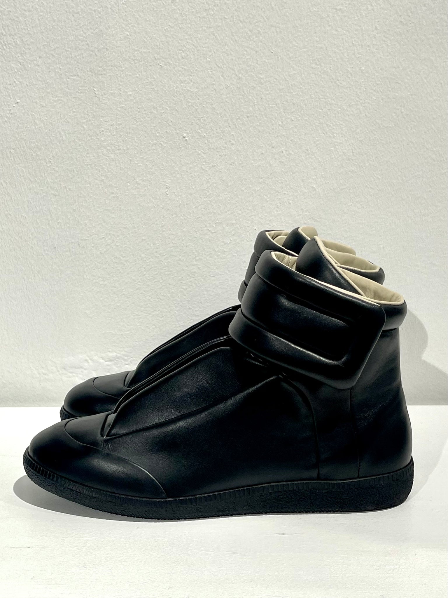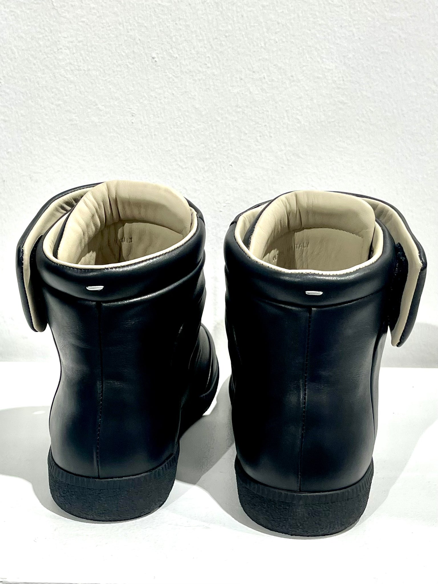Originally launched in the SS11 collection, the Future sneaker is reintroduced this season. Defined by its seamless construction and concealed fastening. Built without visible laces, a hidden strap folds across the tongue to create a uniform surface, evoking anonymity and restraint. Crafted in soft calfskin, the mid-top silhouette is finished with a tonal sole.