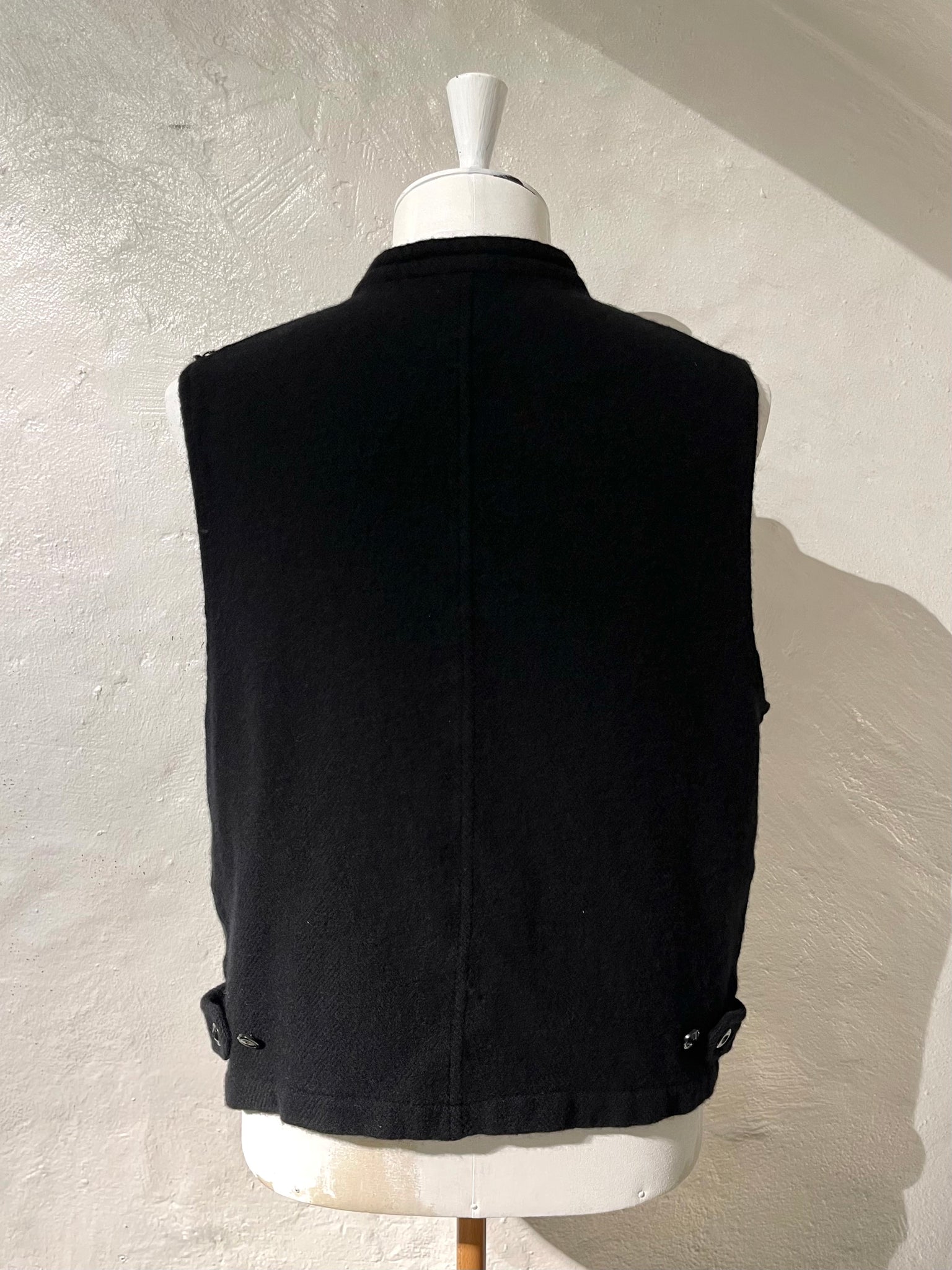 Wool vest with zip closure and an eye button. Can be closed with the zipper or the two buttons at the top.
